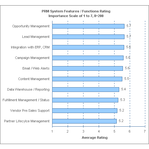 根據(jù)我公司在8月所做的一份為期兩周的網(wǎng)上調(diào)查顯示,人們最希望PRM具有的特點(diǎn)是機(jī)會(huì)/領(lǐng)導(dǎo)管理以及能與其它企業(yè)管理軟件(CRM/ERP)相結(jié)合。這份調(diào)查收集了約200份來(lái)自渠道經(jīng)理、渠道伙伴、軟件供貨商和IT、電信、金融服務(wù)以及生產(chǎn)行業(yè)的顧問(wèn)的回答。