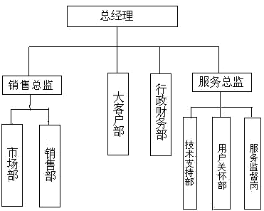 經(jīng)過討論,結合公司的實際情況,Z公司迅速采納了項目組提出的建議,并在CRM項目啟動大會上宣布項目開始實施。而且調整了組織結構,新的結構如圖2所示。整個CRM項目分兩個階段實施,第一階段實現(xiàn)銷售業(yè)務的跟蹤監(jiān)控,以及部分市場信息的共享傳遞,第二階段再將公司的市場管理、服務管理、用戶關懷等業(yè)務流程納入整個系統(tǒng)。