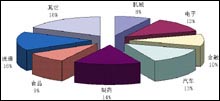 2001年中國(guó)CRM軟件市場(chǎng)各行業(yè)銷售額比例圖