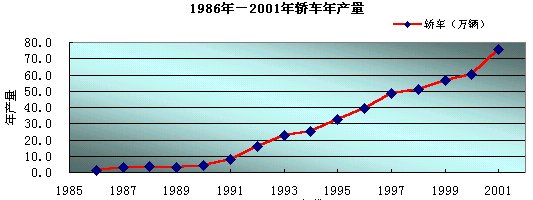 1997年上汽集團與美國通用的合資企業(yè)上海通用公司成立,產(chǎn)品定位在"別克"中高檔汽車上;1998年本田公司替代標致公司成為廣州的合作伙伴,產(chǎn)品定位在"雅閣"中高檔汽車。產(chǎn)品品種的豐富以及生產(chǎn)能力的擴大,為今后中高檔汽車市場需求的快速增長奠定了穩(wěn)固的基礎。