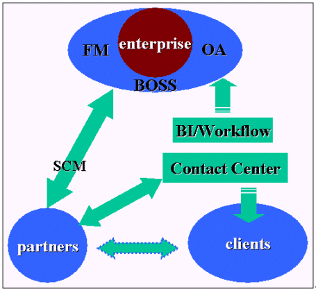 根據(jù)上面的分析SCN新一代客戶聯(lián)絡(luò)中心建成后將具備較強的雙向交互能力,為了更好的統(tǒng)一和完善整個客戶關(guān)系管理框架,我們希望盡可能的將企業(yè)內(nèi)外的所有溝通都綜合到一個平臺,他融合了企業(yè)的主頁,企業(yè)的客戶聯(lián)絡(luò)中心,企業(yè)的內(nèi)部辦公自動化網(wǎng),企業(yè)資源管理系統(tǒng)等這樣客戶只需要通過這樣的一個平臺便可解決所有問題,或者說是客戶、員工等企業(yè)相關(guān)的任何個體之間的交流可以有多個表現(xiàn)形式如電話,電郵,網(wǎng)絡(luò),辦公自動化系統(tǒng),短信等等但最終都轉(zhuǎn)移到同一個平臺上來實現(xiàn)交換。為什么需要這樣呢?只有這樣才能最好的實現(xiàn)統(tǒng)一信息。信息統(tǒng)一了,我們就可以建立客戶資訊的數(shù)據(jù)倉庫了,有了統(tǒng)一的數(shù)據(jù)信息,任何基于客戶的分析、細分都可以實現(xiàn),而客戶的任何遺留痕跡如嗜好,習(xí)慣,忠誠度,消費意愿等等都可以方便的提取,最后通過商業(yè)智能輔助進行客戶生命周期管理、市場營銷、財務(wù)管理和戰(zhàn)略決策等。形成一個良性循環(huán)的客戶關(guān)系管理生態(tài)鏈。由于客戶關(guān)系管理將涉及到各部門之間的協(xié)調(diào)和合作,業(yè)務(wù)模式變革等眾多方面,在此不作詳細的描敘,本人將在另外的文章中專門來探討客戶關(guān)系管理中長遠規(guī)劃的問題。