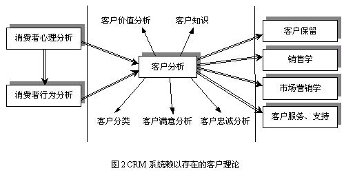 大多數(shù)CRM研究人員和應(yīng)用專家不認(rèn)為CRM存在作為應(yīng)用支撐的理論基礎(chǔ),充其量認(rèn)為CRM只是支持企業(yè)營銷的商業(yè)策略。隨著企業(yè)追求市場活動績效的熱情的提高,企業(yè)開始采用定性和定量的分析方法決策其與市場和客戶有關(guān)的企業(yè)活動,如有效的客戶滿意度評價(jià)、客戶分類、客戶盈利率分析等。而這些決策迫切需要相關(guān)的理論基礎(chǔ)為指導(dǎo),真正擺脫靠經(jīng)驗(yàn)進(jìn)行決策的做法。當(dāng)前CRM的理論研究和學(xué)術(shù)探討并未真正走向體系化、統(tǒng)一化,所以造成CRM市場中提供的功能參差不齊。CRM系統(tǒng)必須存在一個(gè)完整的理論體系為指導(dǎo),本文將CRM系統(tǒng)賴以存在的理論基礎(chǔ)統(tǒng)稱為客戶理論(Theory on Customer)。