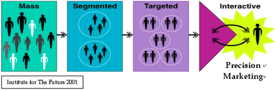 首先,互聯(lián)網(wǎng)的出現(xiàn)改變了營銷的概念,為大規(guī)模定制創(chuàng)造了空前的機(jī)遇。隨著富裕而又有辨別能力的中產(chǎn)階級(jí)的逐漸壯大,預(yù)先營銷的期望以及針對(duì)個(gè)人的解決方案日益成為一種標(biāo)準(zhǔn)。從記住他們的行為&偏好并為他們發(fā)送相關(guān)產(chǎn)品信息 (例如Amazon.com) …到幫助他們得到自己理想中的產(chǎn)品 (例如Dell.com,) ,CRM觀念的關(guān)鍵之處就在于為客戶提供符合他們需求的產(chǎn)品/服務(wù)而不是向他們推銷你的東西;ヂ(lián)網(wǎng)使你能夠與客戶建立學(xué)習(xí)關(guān)系,從銷售轉(zhuǎn)移到解決問題。互聯(lián)網(wǎng)上的CRM已經(jīng)上升到了另一個(gè)高度。