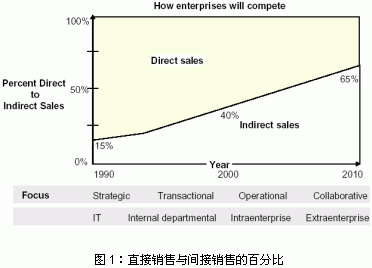 目前,在越來越多的行業(yè)銷售額的大部分是通過間接渠道取得的。例如,在高科技、生活消費品和離散制造行業(yè),間接銷售合作伙伴帶來了的收入占總收入的70%以上