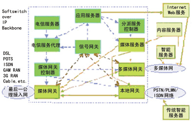 E1、DSL、Ethernet到無線接入技術GSM/GPRS、PHS、W-CDMA以至未來的接入技術;支持與各種傳統(tǒng)電信業(yè)務網絡如PSTN和PLMN網絡以信令網節(jié)點方式互聯(lián),支持與IP業(yè)務網絡(如VoIP)和多媒體通信網絡(如Internet)互聯(lián);與接入網絡的信令和傳統(tǒng)業(yè)務網絡的信令(SS7)無縫互聯(lián);支持話音、遠程會議、多媒體通信等基于會話的通信業(yè)務;