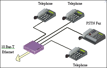 以太網(wǎng)相連,可支持兩個標(biāo)準(zhǔn)的電話終端進行呼叫。