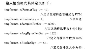 語音采集與壓縮使用Windows提供的ACM(Audio Compression Manager,音頻壓縮管理器)函數(shù),ACM的聲明文件提供并只提供直接調(diào)用ACMAPI的功能。如果有必要直接使用低層功能,可以按照下面的步驟使用ACM API。