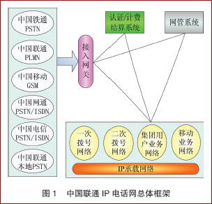 中國(guó)聯(lián)通IP電話網(wǎng)自1999年6月入運(yùn)營(yíng)以來(lái),經(jīng)過(guò)一期、二期和三期工的建設(shè),目前,網(wǎng)絡(luò)已覆蓋中國(guó)329個(gè)地市,E1端口規(guī)模超過(guò)1.8萬(wàn)個(gè),成為全球最的IP電話網(wǎng)絡(luò)。網(wǎng)絡(luò)的話務(wù)量已經(jīng)達(dá)到月近10億分鐘,已是世界上流量最大的電話網(wǎng)絡(luò)。中國(guó)聯(lián)通IP電話網(wǎng)總體框架圖1所示,包括IP承載網(wǎng)絡(luò)、業(yè)務(wù)網(wǎng)絡(luò)(包式括一次撥號(hào)業(yè)務(wù)網(wǎng)、二次撥號(hào)業(yè)務(wù)網(wǎng)、集團(tuán)用戶業(yè)務(wù)網(wǎng)和移動(dòng)用戶業(yè)務(wù)網(wǎng))、IP電話網(wǎng)絡(luò)管理設(shè)備(如計(jì)費(fèi)結(jié)算系統(tǒng)、網(wǎng)管系統(tǒng)等)、與各類本地網(wǎng)絡(luò)連接的接入網(wǎng)關(guān)等部分。