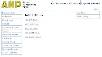 有四個(gè)不同的中繼類型可供選擇:ZAP, IAX2, SIP和ENUM,再加上一個(gè)自定義類型,你所選擇的VoIP服務(wù)提供商應(yīng)該有相關(guān)的信息來(lái)指導(dǎo)你選擇哪一個(gè)具體的類型。