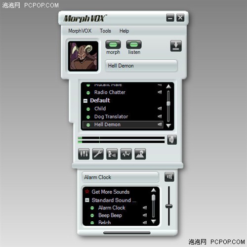 這是個有趣又實用的插件。它可以把你改變你的聲音從怪物到女孩的聲音。你只能在用Skype,Yahoo messenger,Voipcheap等網絡電話軟件通話時用它。
