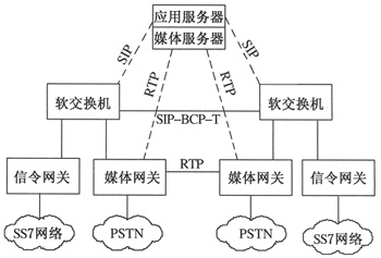 Softswitch主要實現(xiàn)連接、路由和呼叫控制、關守和帶寬的管理以及話務紀錄的生成,是網(wǎng)絡的核心。它通過各種協(xié)議與各種網(wǎng)絡實體通信,實現(xiàn)各種語音、數(shù)據(jù)、多媒體業(yè)務。通過媒體網(wǎng)關控制協(xié)議(MGCP)與媒體網(wǎng)關和信令網(wǎng)關通信,控制網(wǎng)關進行呼叫處理,同時通過流控制傳輸協(xié)議(SCTP)與信令網(wǎng)關通信。