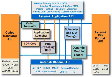 API編程接口,如AGI,對(duì)外部的應(yīng)用程序可以使用PHP,Python,Perl,Java等語言編寫。Asterisk運(yùn)行操作系統(tǒng)平臺(tái)的Linux內(nèi)核要求大于等于2.