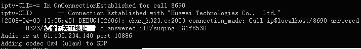 Asterisk與華為8010語音網(wǎng)關(guān)的H323連接已經(jīng)成功建立