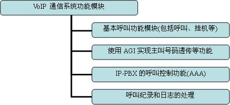 如果是基于純軟件的實(shí)現(xiàn)方案,Asterisk是構(gòu)建VoIP項(xiàng)目的核心,系統(tǒng)中所有與用戶呼叫有關(guān)的功能和管理都通過它來實(shí)現(xiàn),包括VoIP各種協(xié)議的互通和配置,以及各種呼叫設(shè)備的配置文件。本文檔所討論的VoIP通信系統(tǒng)基本功能如圖3-2所示,一般的Asterisk的任務(wù)包括了兩方面,一是與呼叫有關(guān)的,包括基本呼叫處理、主叫號(hào)碼透傳、呼叫紀(jì)錄和日志生成等,二是與呼叫控制有關(guān),即終端用戶的認(rèn)證計(jì)費(fèi)功能。