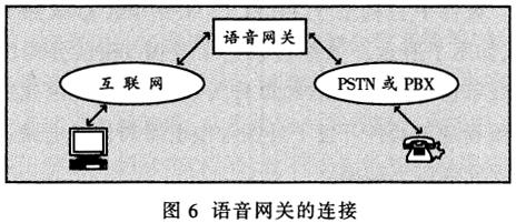 ——圖6為計(jì)算機(jī)到普通電話的通信方式。語音網(wǎng)關(guān)的一側(cè)與公眾電話網(wǎng)或用戶小交換機(jī)相連。在主叫方,它接收電話信令,將其數(shù)字化、壓縮、打包(語音包)并送到互聯(lián)網(wǎng)上;在被叫方,它從互聯(lián)網(wǎng)上接收語音包,解包、解壓并將其發(fā)送到公眾電話網(wǎng)或用戶小交換機(jī)上。