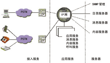 數(shù)據(jù)交換技術(shù)的發(fā)展使IP逐漸成為數(shù)字、語(yǔ)音等各種信息服務(wù)的網(wǎng)絡(luò)基礎(chǔ)標(biāo)準(zhǔn)。各種基于IP傳送話音、視頻的技術(shù)標(biāo)準(zhǔn)(如SGCP、VoIP等)也不斷提出并迅速統(tǒng)一。那么,基于IP的統(tǒng)一消息方案由兩部分組成:通用信息接收箱功能模塊和通用連接手段。通用信息接收箱功能模塊用于把所有形式的消息,如傳真、話音郵件、電子郵件等集成到一個(gè)IP網(wǎng)上的通用接收箱,用來(lái)提供給用戶(hù)一個(gè)公共平臺(tái),來(lái)管理所有的消息。通用連接手段允許用戶(hù)通過(guò)電話網(wǎng)、DSL網(wǎng)、有線電視網(wǎng)和無(wú)線網(wǎng),使用電話、PC、電子郵件客戶(hù)設(shè)備、Web瀏覽器、無(wú)線手持設(shè)備和PDA訪問(wèn)通用信息接收箱。