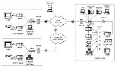 由于政府部門所跨的地域較廣,彼此之間的距離較遠(yuǎn),而且各級(jí)政府部門的會(huì)議較多,因此,利用修建好的信息高速公路建立一個(gè)基于IP網(wǎng)絡(luò)的視像會(huì)議系統(tǒng)具有一定的實(shí)用價(jià)值。這種系統(tǒng)既可以提高政府部門的辦公效率以及政府專用網(wǎng)絡(luò)的利用率,又可以節(jié)省政府部門的會(huì)議費(fèi)用。以下介紹在IP寬帶網(wǎng)上構(gòu)建電視電話會(huì)議系統(tǒng)解決方案。