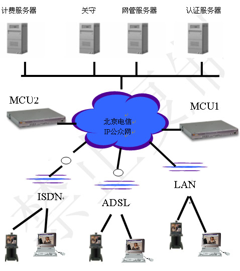 H.323協(xié)議的視訊平臺包括兩個層面:視訊交換網(wǎng)絡(luò)和運(yùn)營支撐網(wǎng)絡(luò)。視訊交換網(wǎng)絡(luò)包括MCU、Gatekeeper、Gateway、終端等。運(yùn)營支撐網(wǎng)絡(luò)包括網(wǎng)絡(luò)管理系統(tǒng)、認(rèn)證計(jì)費(fèi)系統(tǒng)、資源管理系統(tǒng)、會議控制系統(tǒng)、用戶管理系統(tǒng)、客戶服務(wù)系統(tǒng)等。
