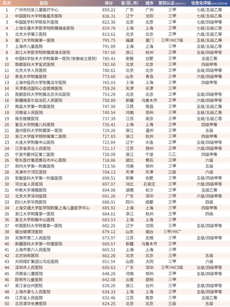 北京協(xié)和醫(yī)院,四川大學(xué)華西醫(yī)院,復(fù)旦大學(xué)附屬中山醫(yī)院,中山大學(xué)附屬第一醫(yī)院,北京第一醫(yī)院,北京大學(xué)第三醫(yī)院,浙江大學(xué)附屬第一醫(yī)院