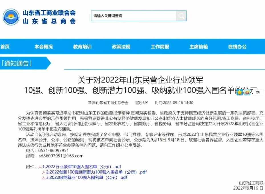 據(jù)悉,2022年山東民營企業(yè)100強(qiáng)系列榜單申報(bào)發(fā)布活動,由省工商聯(lián)、省科技廳、省工業(yè)和信息化廳、省人力資源和社會保障廳、省農(nóng)業(yè)農(nóng)村廳、省商務(wù)廳、省稅務(wù)局、省市場監(jiān)管局共同開展,經(jīng)企業(yè)申報(bào)、部門推薦等程序,終形成2022年山東民營企業(yè)100強(qiáng)入圍名單。