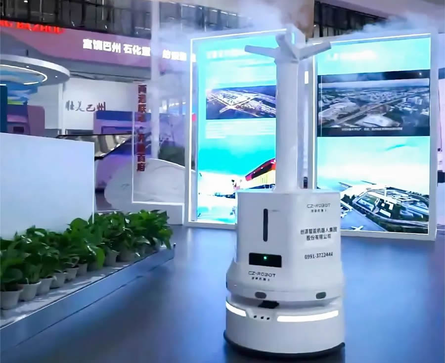 在展會(huì)期間,創(chuàng)澤集團(tuán)智能服務(wù)機(jī)器人和智能消毒機(jī)器人一經(jīng)亮相就吸引了不少媒體采訪(fǎng)。記者們看到正在工作的消毒機(jī)器人后興趣十足,向工作人員深入了解了它的消殺能力以及內(nèi)在科技技術(shù)。智能消毒機(jī)器人采用超聲波霧化技術(shù),優(yōu)越的滲透擴(kuò)散能力,自主知識(shí)產(chǎn)權(quán)霧化系統(tǒng),出霧量大殺毒效果快,環(huán)形立體消毒,霧化速度達(dá)3500g/h,可實(shí)現(xiàn)全場(chǎng)景的廣域無(wú)死角消殺工作。配備的自動(dòng)駕駛系統(tǒng),在工作過(guò)程中,可自主規(guī)劃路徑,自動(dòng)躲避障礙物,即便在人流量較大的商場(chǎng)、地鐵、醫(yī)院等場(chǎng)所,也能夠輕松避讓人群,完成消殺作業(yè)。