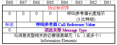 其中的協(xié)議標(biāo)識(shí)符指示消息的參考協(xié)議類型,比如I.451消息的協(xié)議標(biāo)識(shí)符為"00001000";呼叫參考值用于指示消息所控制的B信道上哪一呼叫,該值由發(fā)起呼叫的一側(cè)進(jìn)行分配,且和某一特定呼叫相關(guān)的所有消息都附帶了這個(gè)值。