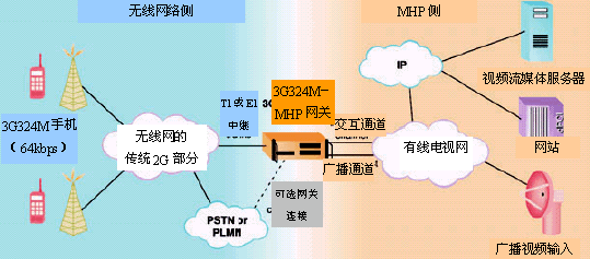 如果MHP機(jī)頂盒的顯示介面做得和視頻手機(jī)終端相類似,那么,MHP Java應(yīng)用程序無需任何修改就可以被無線視頻用戶使用。對于應(yīng)用程序開發(fā)人員來說,從普通網(wǎng)關(guān)的有線電視側(cè)看,這時(shí)的無線用戶就象是一個(gè)典型的交互式電視用戶。在無線網(wǎng)絡(luò)側(cè),網(wǎng)關(guān)是作為無線視頻呼叫的標(biāo)準(zhǔn)部件出現(xiàn)的,因此兩個(gè)網(wǎng)絡(luò)都不需要做任何改動(dòng),只要增加這個(gè)連接兩個(gè)網(wǎng)絡(luò)的網(wǎng)關(guān),然后告訴無線用戶這兩個(gè)網(wǎng)絡(luò)已經(jīng)連接起來了就行了。只需要對網(wǎng)關(guān)的處理作修改,這些功能特性也可以應(yīng)用到不是遵循3G324M標(biāo)準(zhǔn)的視頻手機(jī)而無須對MHP應(yīng)用程序側(cè)作任何變更。
