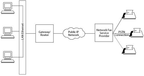 目前,許多的Internet傳真服務(wù)僅能提供存儲(chǔ)轉(zhuǎn)發(fā)傳真,這種服務(wù)在用戶電腦終端和世界其他地方的傳真網(wǎng)關(guān)連接在一起。這是一種傳統(tǒng)LAN傳真技術(shù)的擴(kuò)展,客戶端的傳真網(wǎng)關(guān)允許客戶端PC或者工作站創(chuàng)建文檔并通過(guò)一個(gè)通用網(wǎng)關(guān)發(fā)送傳真。
