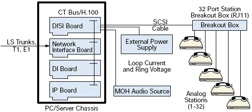DISI16R2, DISI24R2, 和 DISI32R2 可以通過(guò)CTbus與其他集成的網(wǎng)絡(luò)接口和資源板卡連接構(gòu)成可擴(kuò)展的中繼和座席交換的配置.