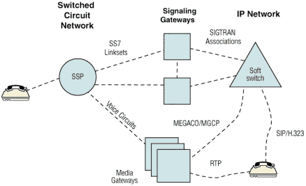 使用SG430信令網(wǎng)關(guān)來(lái)提供信令連接,就可以構(gòu)建一個(gè)分布式交換環(huán)境。這樣,信令網(wǎng)關(guān)、媒體網(wǎng)關(guān)和呼叫控制平臺(tái)就可以放在不同的地方,從而可以用分布式、可伸縮、且成本效益高的IP系統(tǒng)來(lái)取代龐大的交換機(jī)。