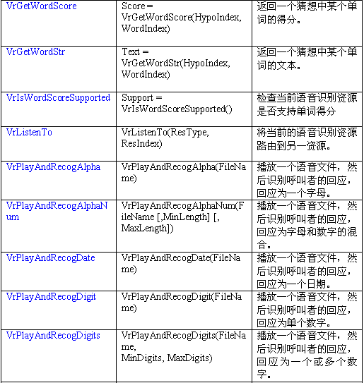語音識(shí)別資源把呼叫者的語音轉(zhuǎn)變?yōu)槲谋咀址。一個(gè)VR資源可以對(duì)一個(gè)語音流數(shù)據(jù)(來自一中繼或會(huì)議資源)進(jìn)行識(shí)別。