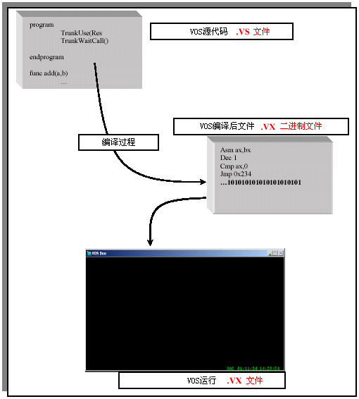 運(yùn)行過程中,VOS調(diào)用VOS.exe程序,VOS.exe解釋執(zhí)行編譯后的VOS代碼,可以通過F5鍵或者按鈕 來實(shí)現(xiàn)。