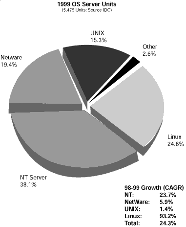 的系統(tǒng)至1999年以來(lái)已經(jīng)占據(jù)了25%的服務(wù)器市場(chǎng),僅次于 Windows。