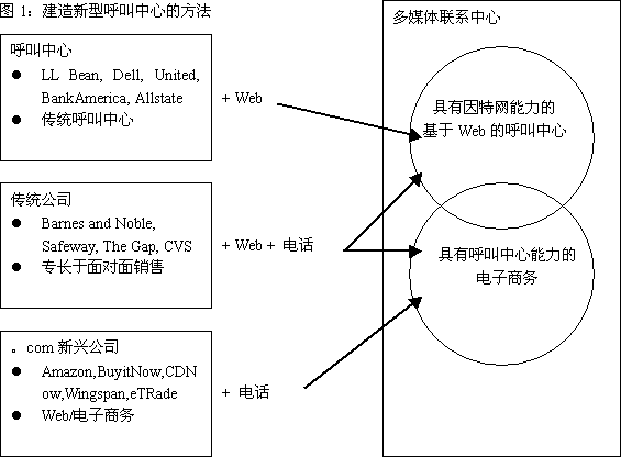 所有的公司都迫切希望找到一種途徑,使自己擁有“具有因特網能力的、web集成的呼叫中心”或“具有呼叫中心能力的電子商務網站”。圖1所示為實施方法的一個實例。但是,不管你如何稱呼它,如何達到目標,你都會面臨處理多媒體聯(lián)系的挑戰(zhàn)。多媒體聯(lián)系中心包括通過電話簽定合同和處理來自web的合同,可能是通過電子郵件,文本交談,電話呼叫,或通過web的語音呼叫。并且,大多數時候是由同一組人處理多種媒體服務。