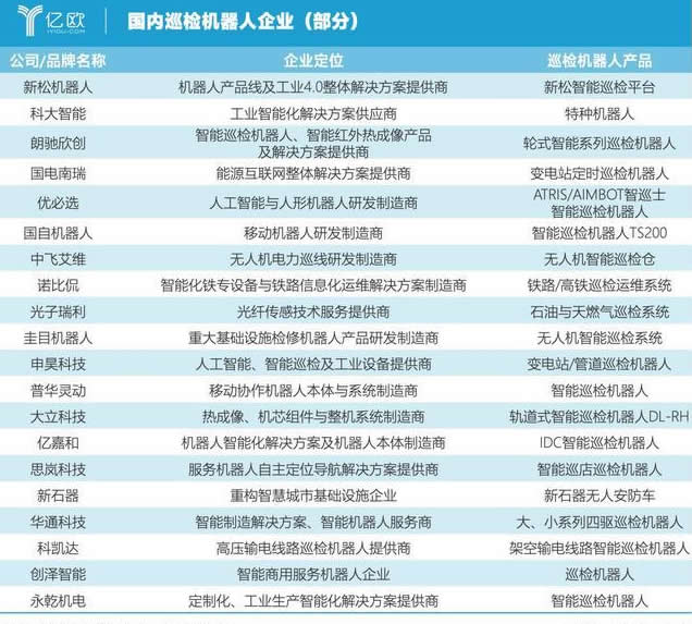 如今,在國(guó)內(nèi)巡檢機(jī)器人行業(yè),也已經(jīng)有眾多玩家參與到其中,他們將巡檢機(jī)器人的應(yīng)用場(chǎng)景由電力場(chǎng)景拓展至管道、橋梁隧道,以及智慧園區(qū)、智慧社區(qū)、智慧巡警、智慧港口等L域。億歐科創(chuàng)在此梳理了20家巡檢機(jī)器人制造商。
