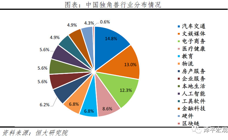 2.2 行業(yè)分布:汽車交通行業(yè)獨角獸數(shù)量多