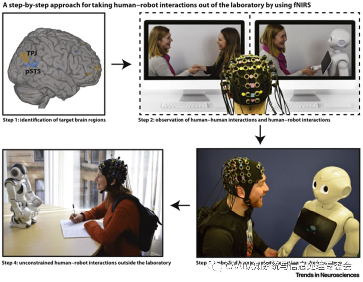 在現(xiàn)實(shí)世界中,可以采用逐步的方法來實(shí)現(xiàn)實(shí)驗室之外的不受約束的人機(jī)交互。D一步是識別與社會認(rèn)知過程相關(guān)的大腦區(qū)域,如之前的發(fā)現(xiàn);隨后,基于屏幕的研究探索了這些區(qū)域在觀察人人和人機(jī)交互過程中的參與情況;第三步是在實(shí)驗室環(huán)境中與機(jī)器人進(jìn)行相對不受約束的交互;后一步是允許在日常環(huán)境(如學(xué)校和家庭)中與機(jī)器人進(jìn)行具體交互。每一步的結(jié)果都可以為下一步使用的方法和分析提供信息。