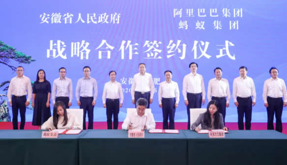儀式上,合肥、蚌埠、滁州、蕪湖、黃山、宿州等市與阿里巴巴集團、螞蟻集團分別簽署了合作協(xié)議。