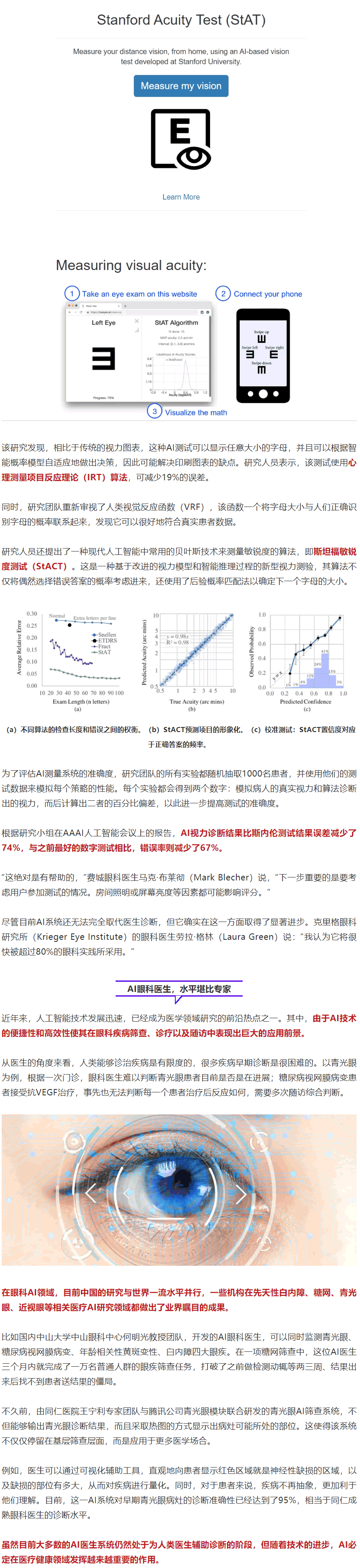 近日,斯坦福大學(Stanford University)計算機科學家克里斯·皮奇(Chris Piech)及其同事開發(fā)了一種由人工智能(AI)推動的在線視力測試系統(tǒng),該系統(tǒng)僅需進行四步操作,即可完成視力測試,且結果十分準確。