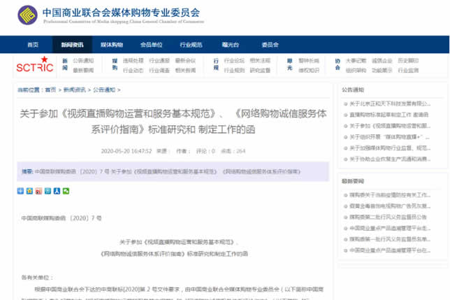 經(jīng)過大量考察調(diào)研和深入研究,中國(guó)商業(yè)聯(lián)合會(huì)(簡(jiǎn)稱中國(guó)商聯(lián))近期發(fā)布通知,要求由中國(guó)商業(yè)聯(lián)合會(huì)媒體購物專業(yè)委員會(huì)(簡(jiǎn)稱中國(guó)商聯(lián)媒購委)牽頭起草制定行業(yè)內(nèi)首部全國(guó)性社團(tuán)標(biāo)準(zhǔn)《視頻直播購物運(yùn)營(yíng)和服務(wù)基本規(guī)范》和《網(wǎng)絡(luò)購物誠(chéng)信服務(wù)體系評(píng)價(jià)指南》兩項(xiàng)標(biāo)準(zhǔn)(以下簡(jiǎn)稱《標(biāo)準(zhǔn)》),預(yù)計(jì)將于7月份正式發(fā)布執(zhí)行。