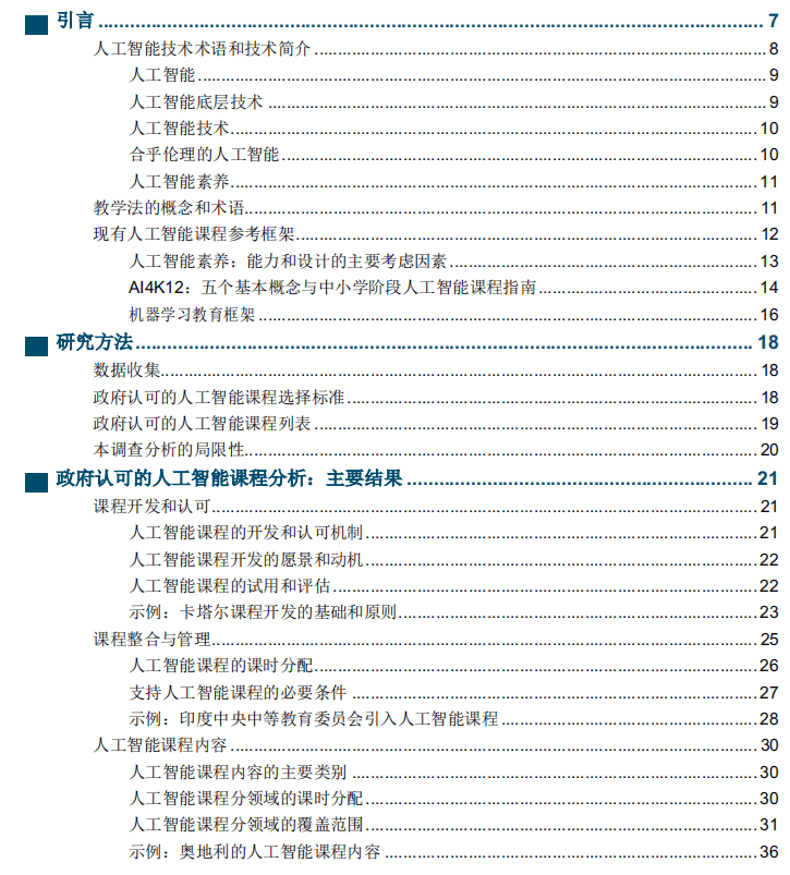 聯(lián)合國教科文組織發(fā)布了《基礎教育階段人工智能課程:官方認可的人工智能課程指南》報告,這是D一份關(guān)于基礎教育階段人工智能課程開設狀況的調(diào)查報告。