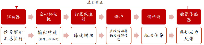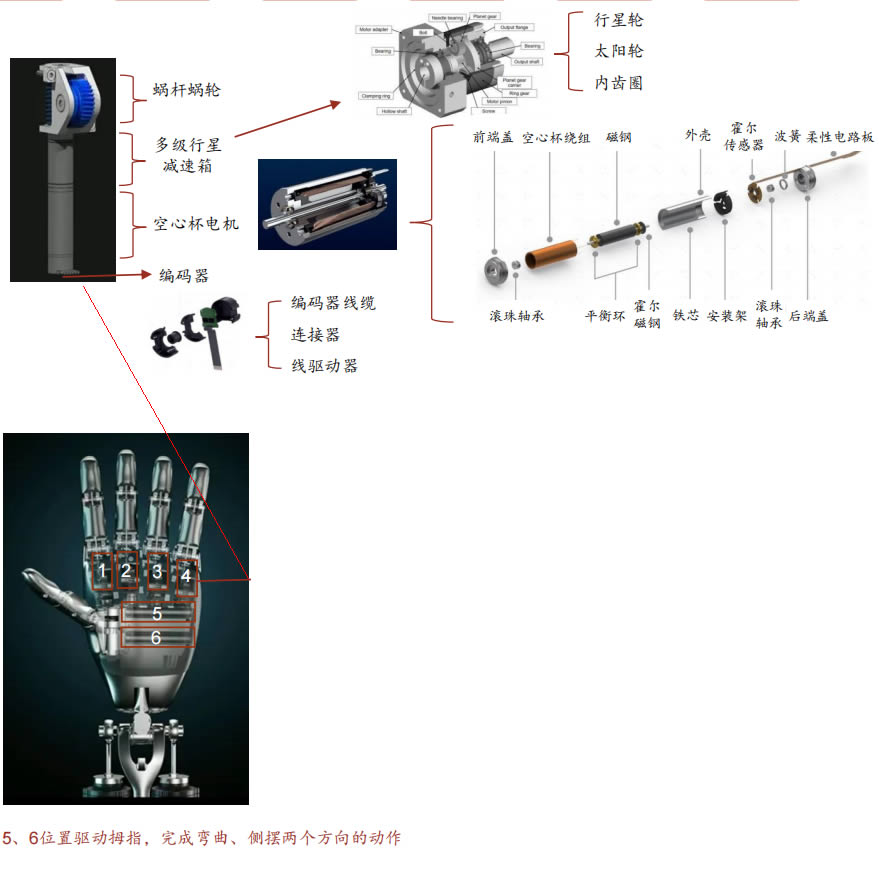 旋轉(zhuǎn)執(zhí)行器分布于肩部、手部等多自由度關(guān)節(jié),作用是將某物旋轉(zhuǎn)到一定角度完成旋轉(zhuǎn)運動;驅(qū)動關(guān)節(jié)完成旋轉(zhuǎn)動作,減速器為核心部件