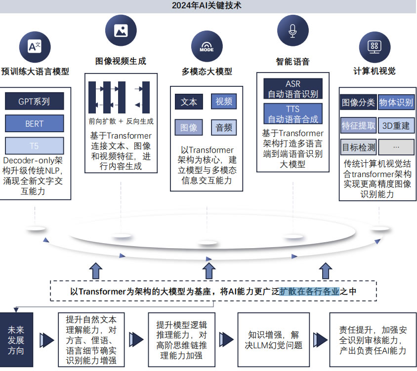 L域的技術(shù)能力增強(qiáng)和應(yīng)用范圍拓寬。未來(lái),基于Transformer的大模型架構(gòu)將持續(xù)提升自然語(yǔ)言理解、擴(kuò)展