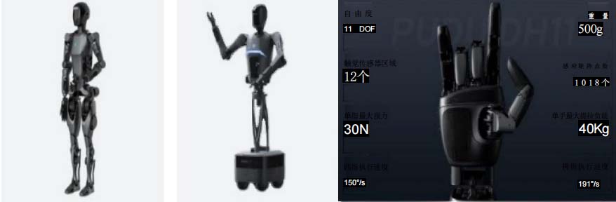 指靈巧手PUDU DH11以及一款全尺寸雙足人形機器人PUDU D9,率先完成了專用、類人形、人形三類機