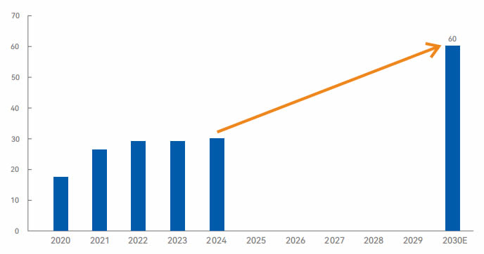 展望2030年,我們滿(mǎn)懷信心,預(yù)測(cè)市場(chǎng)將有超1倍的增長(zhǎng)空間,這意味著從明年起進(jìn)入恢復(fù)期后,每年需新增約5萬(wàn)臺(tái)銷(xiāo)量。 預(yù)計(jì)2030年ZG工業(yè)機(jī)器人市場(chǎng)銷(xiāo)量將達(dá)到60萬(wàn)臺(tái),屆時(shí)ZG工業(yè)機(jī)器人銷(xiāo)量國(guó)產(chǎn)占比將達(dá)到70%左右。