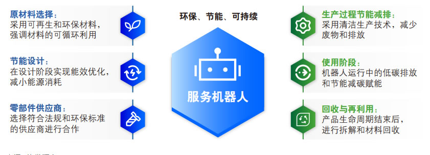 服務機器人行業(yè)有著技術創(chuàng)新驅動和多領域應 用的特點 ,其生產和使用對環(huán)境的影響尤為重 要。當前范圍內環(huán)境保護法規(guī)和政策不斷 加強 ,對G科技行業(yè)的環(huán)境責任提出了更G要 求。消費者和投資者越來越關注企業(yè)的環(huán)境責 任 ,企業(yè)的環(huán)境表現(xiàn)直接影響服務機器人企業(yè) 的品牌形象和市場競爭力。本白皮書經過充分 調研 ,證明通過以下策略可有效構建服務機器 人行業(yè)的綠色供應鏈: