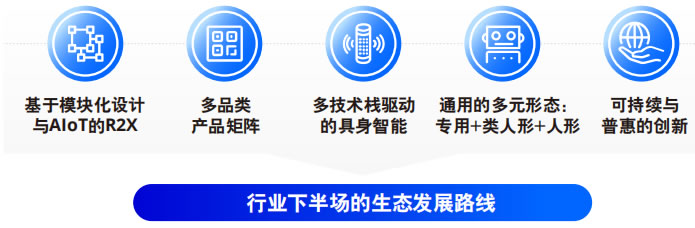 開放性的全棧式智能服務(wù)機器人生態(tài)的發(fā)展 路線是一個多維度、跨領(lǐng)域的綜合性戰(zhàn)略, 進入行業(yè)下半場 ,服務(wù)機器人正沿著一條創(chuàng) 新的發(fā)展道路前進 。這條道路的實現(xiàn)需要依 靠多種戰(zhàn)略的發(fā)展 ,其中包括了以模塊化設(shè) 計和AIoT技術(shù)為基礎(chǔ) ,構(gòu)建起R2X (Robot-to- Everything),即機器人與萬物互聯(lián),使得機器 人能夠靈活地與周圍環(huán)境和設(shè)備進行交互。在 這一生態(tài)中 ,專用、類人形和人形機器人三種 形態(tài)相輔相成 ,不可替代 ,共同構(gòu)成了機器人 行業(yè)的未來生態(tài) ,以適應(yīng)各種場景和任務(wù)。而 這背后 ,是多技術(shù)棧的驅(qū)動力 ,它們集成了自 主移動、操作和交互等關(guān)鍵技術(shù) ,賦予機器人