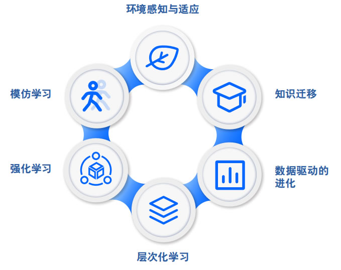 • 層次化學(xué)習(xí):通過設(shè)計(jì)多層次的學(xué)習(xí)架構(gòu),AI 能夠分階段地學(xué)習(xí)任務(wù)。例如,先學(xué)習(xí)簡(jiǎn)單 的基本動(dòng)作 ,然后逐漸學(xué)習(xí)復(fù)雜的操作或策 略,這種分層學(xué)習(xí)策略可以提G學(xué)習(xí)效率。