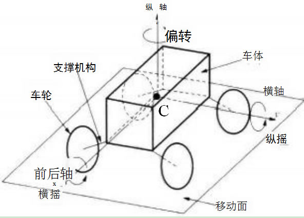 (3)車輪支撐機(jī)構(gòu):車輪支撐機(jī)構(gòu)位于車輪與車體之間,決定兩者在空間上的 關(guān)系,包括自由度在內(nèi)。車輪支撐機(jī)構(gòu)承載車輪以上部分的載荷,并將它分解到各 個車輪上,懸掛裝置、緩沖裝置也應(yīng)該包含在車輪支撐機(jī)構(gòu)之內(nèi)。