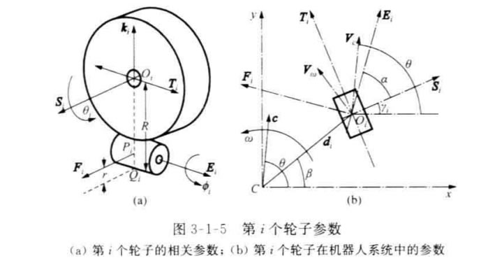 具有傳統(tǒng)車輪的機器人只能有兩個自由度的運動,所以在運動學(xué)上,它等價于 傳統(tǒng)的陸上車輛。然而,具有全方位輪的機器人有3個自由度運動的能力,即沿著 平面上x 軸、y 軸以及繞自身中心旋轉(zhuǎn)的運動能力,這充分增加了機器人的機動 性。本節(jié)將給出這種全方位移動機器人的運動學(xué)模型。